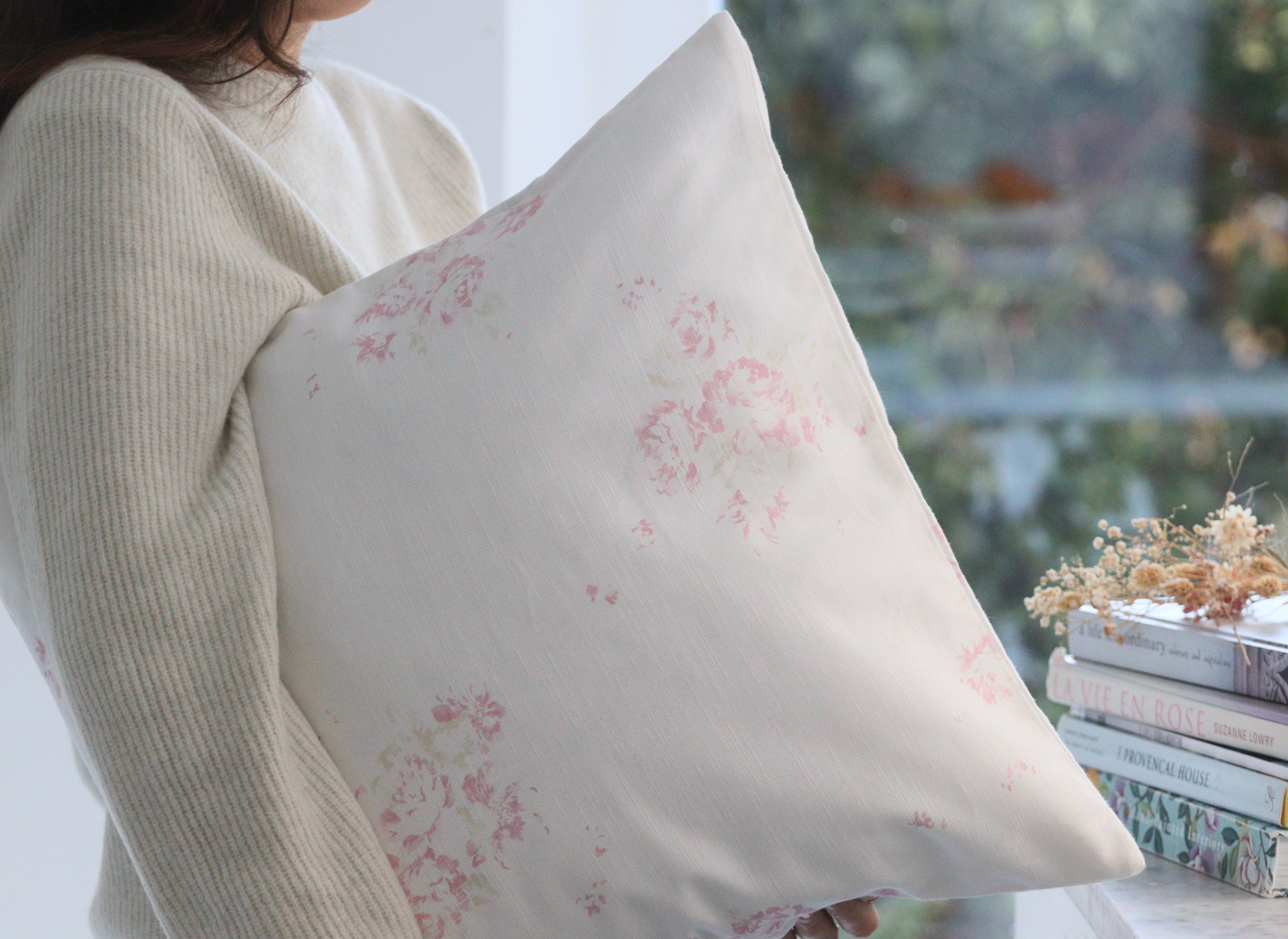 Stunning faded floral cushion in our beautiful Antique Rose fabric.